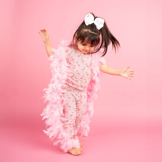 Fancy Flamingos Two-Piece Bamboo Short Sleeve Kids Pajama Pants Set