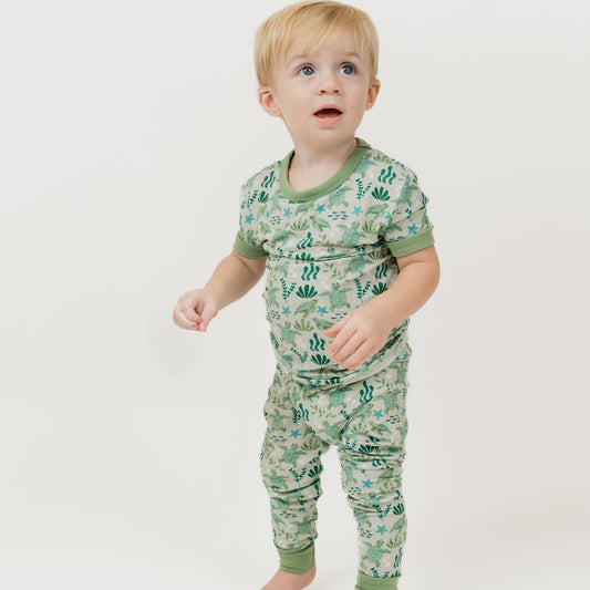 Save the Sea Turtles Bamboo Short Sleeve Kids Pajama Pants Set