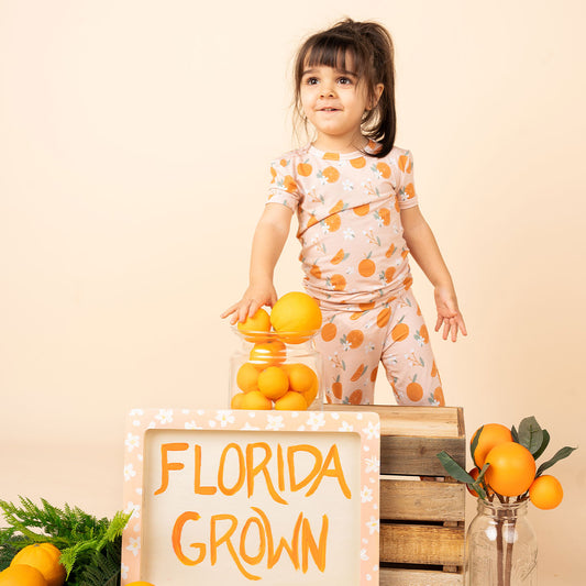 Freshly Squeezed Two-Piece Bamboo Short Sleeve Kids Pajama Pants Set
