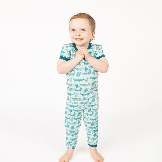Later Gator Two-Piece Bamboo Short Sleeve Kids Pajama Pants Set