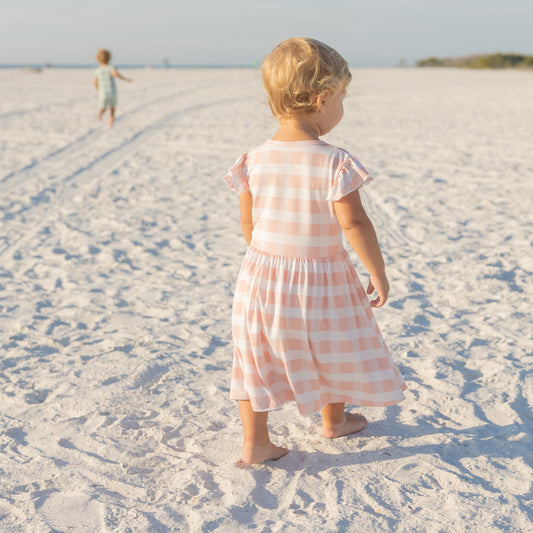 Pink Gingham Short Sleeve Bamboo Twirl Dress