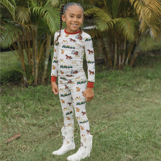 On the Farm Bamboo Long Sleeve Kids Pajama Pants Set