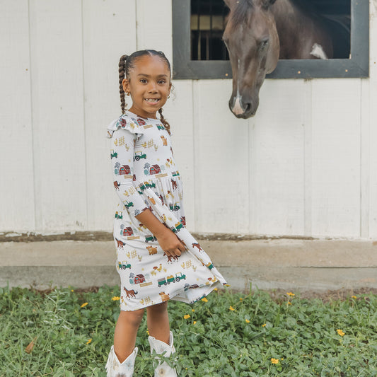 On the Farm Ruffled Long Sleeve Twirl Dress
