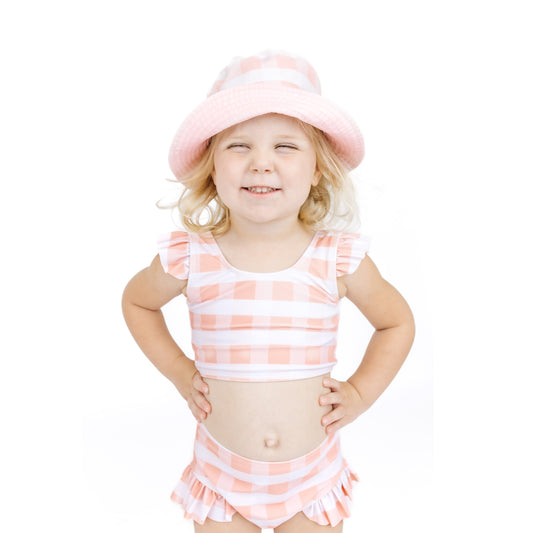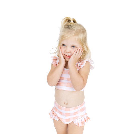 Pink Gingham Flutter Bikini Girls Swimsuit