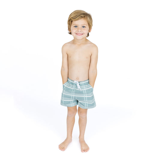 Blue Plaid Boys Swim Trunks