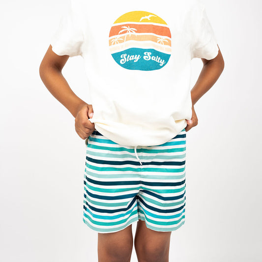 Beach Day and Coral Stripes Reversible Ruffle Sleeve One Piece Girls Swimsuit