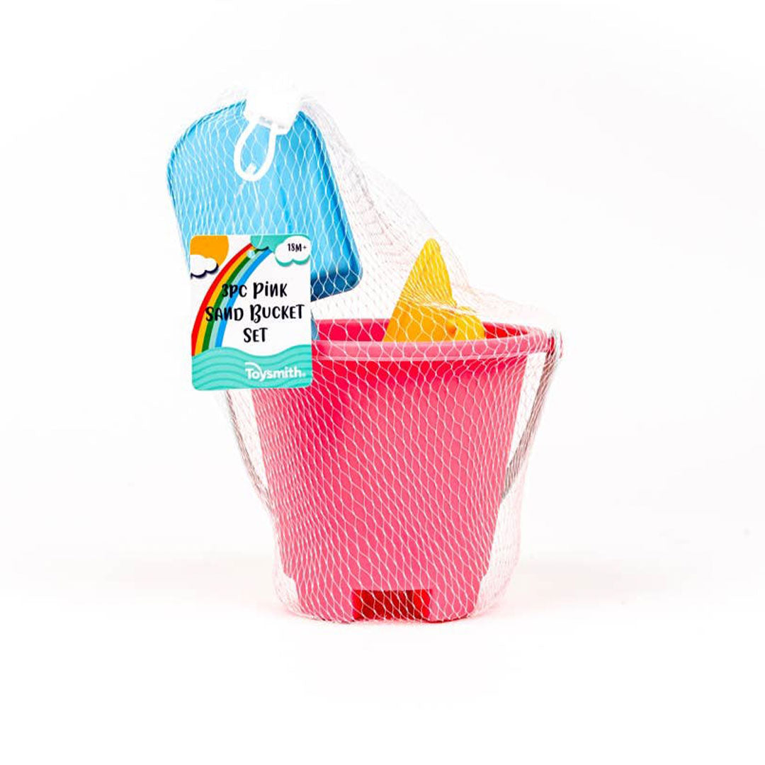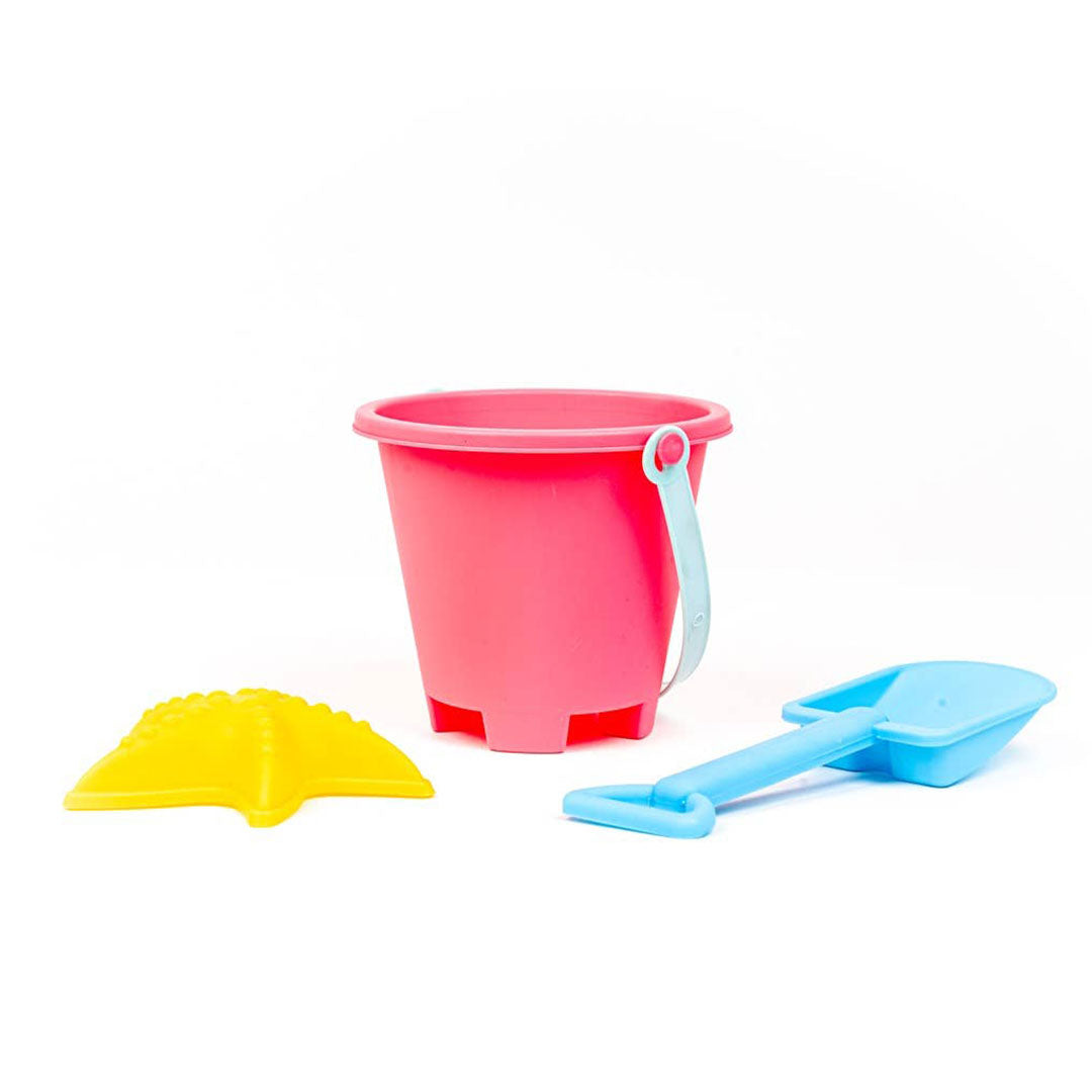 3-Piece Pink Sand Bucket Set has all of your beach day essentials: a pink bucket, blue shovel, and yellow starfish. Whether combing the beach for treasures, building a sandcastle, or playing in the water, this set is sure to enhance any day at the beach. Items are made of plastic. Starfish is indented and can be used to scoop sand or water. • Age Grade: 18m+ • Product Dimensions/Weight: 6.1 L x 5.7 W x 6.9 H / 0.2 lb • Inner Pack Dimensions/Weight: 17.6 L x 6.8 W x 13.5 H / 2.1 lb • Made in: China • Batteries not required