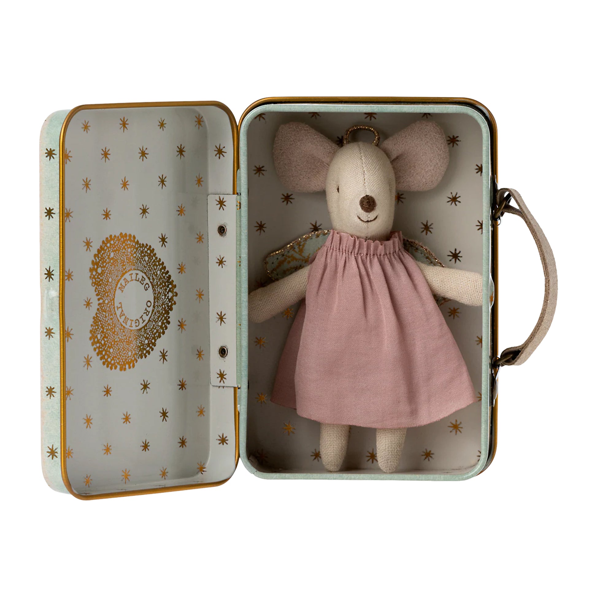 Guardian angels do their best to protect and watch over the little ones. This guardian angel comes in a mint-coloured metal suitcase.