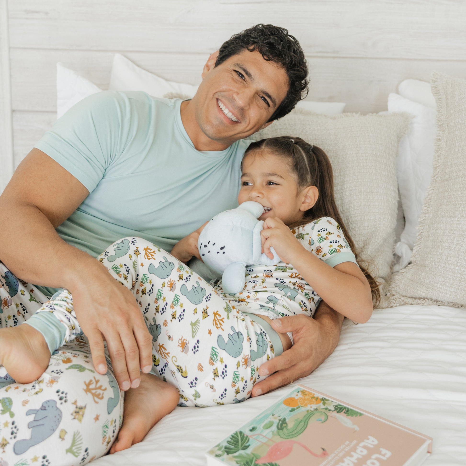 The softest bamboo lounge pants in our Manatee print. Dad can now experience the comfort of bamboo for himself in our mens bamboo pajamas designed for sleep. Pair these with our comfortable tees + match your little ones with our cutest owner designed patterns.