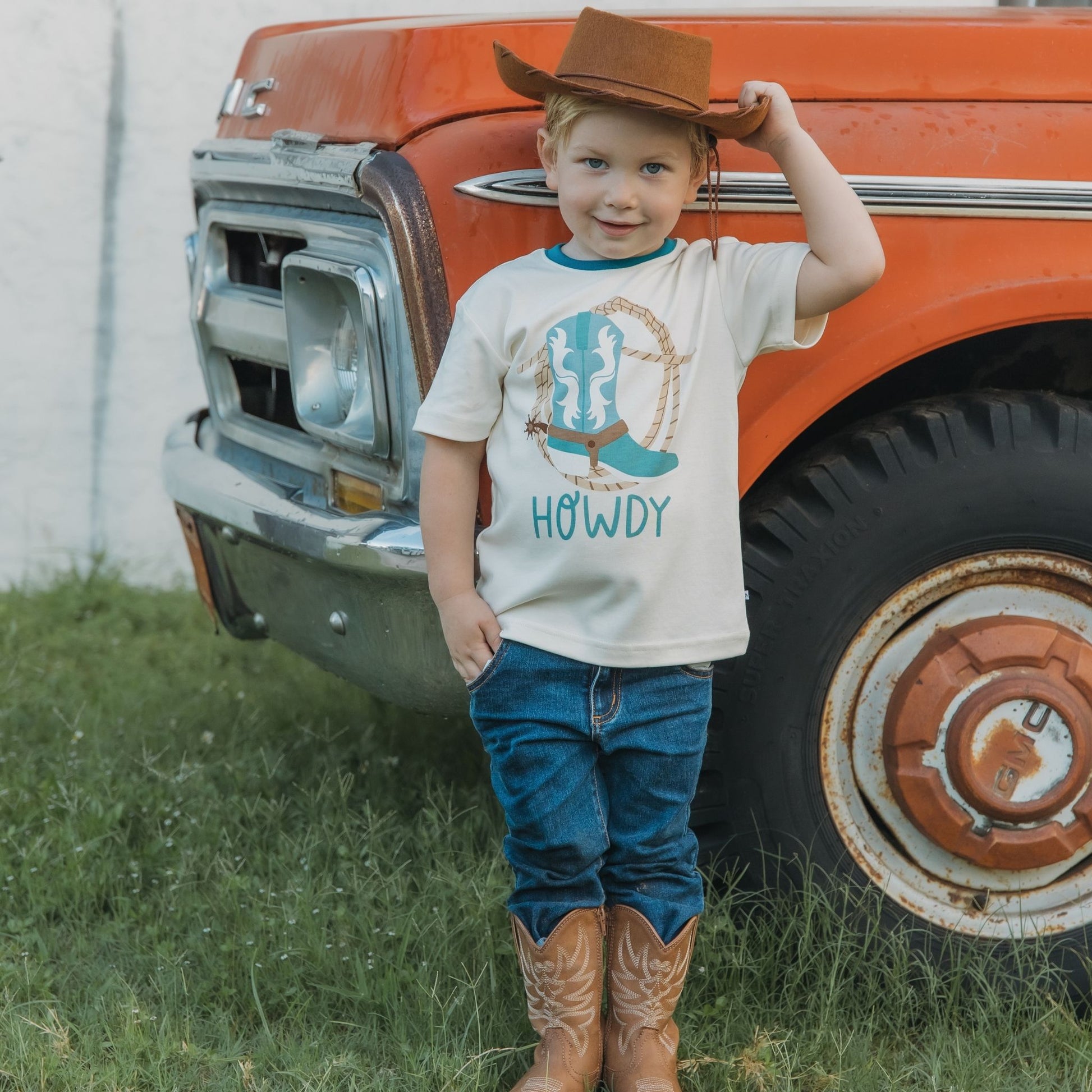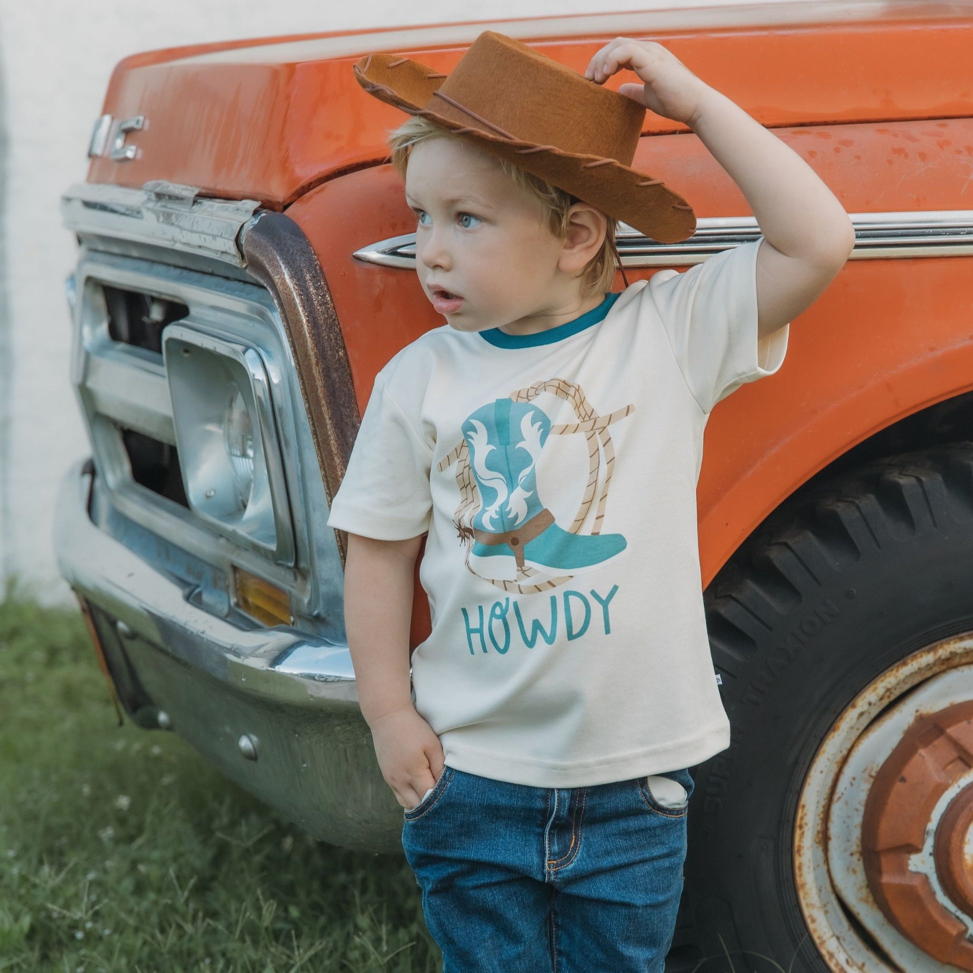 Howdy Western Cotton Ringer Toddler Short Sleeve Shirt