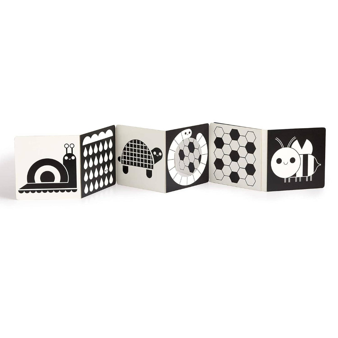 • Accordion book stands upright for tummy time